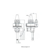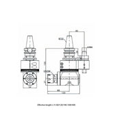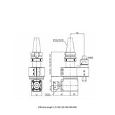 Technical Data: Out: AG90-SDC10 RPM max: 3500 Weight: 7Kg Rotation: 1:1 KW: 2Kw Nm max: 18Nm The output end of the through hole diameter rotates in the opposite direction to the spindle drive handle. Distance between tool handle and pin center BT30-60/BT40-65/BT50-80 CAT...