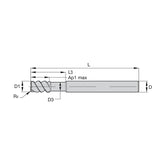 Vendor: WIDIASolid Carbide End Mills • ALUFLASH • Series 3AP9 • Radius • 3 Flute • Long Length • Regular Neck • Cylindrical Shank • Metric