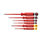 1 variantsClassic VDE slim screwdriver set, fully insulated up to 1000 VAC/1500 VDC according to IEC/EN 60900 • for slotted and Pozidriv screws • VDE tested, safe for work up to 1000 Volt AC or 1500 Volt DC • with blade diameter tapered towards the... -